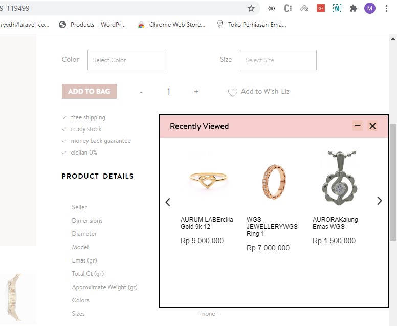When the Cursor is directed to the Website Tab, it displays the Popup List Featured Product Capital based on Viewed